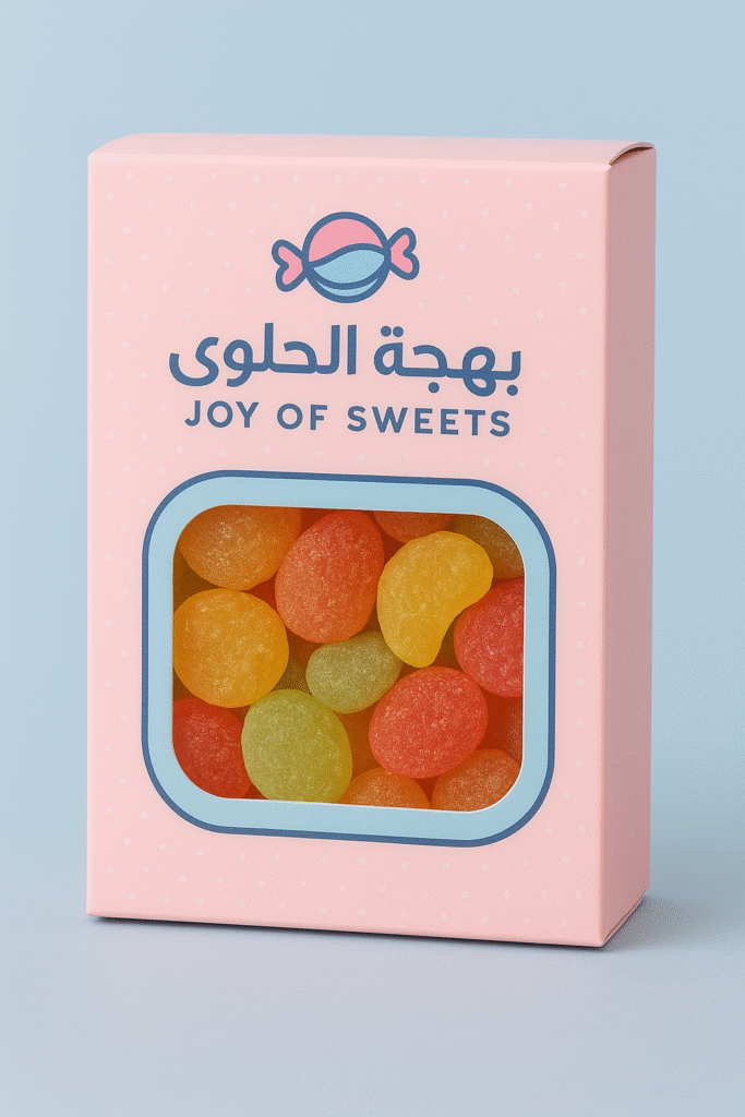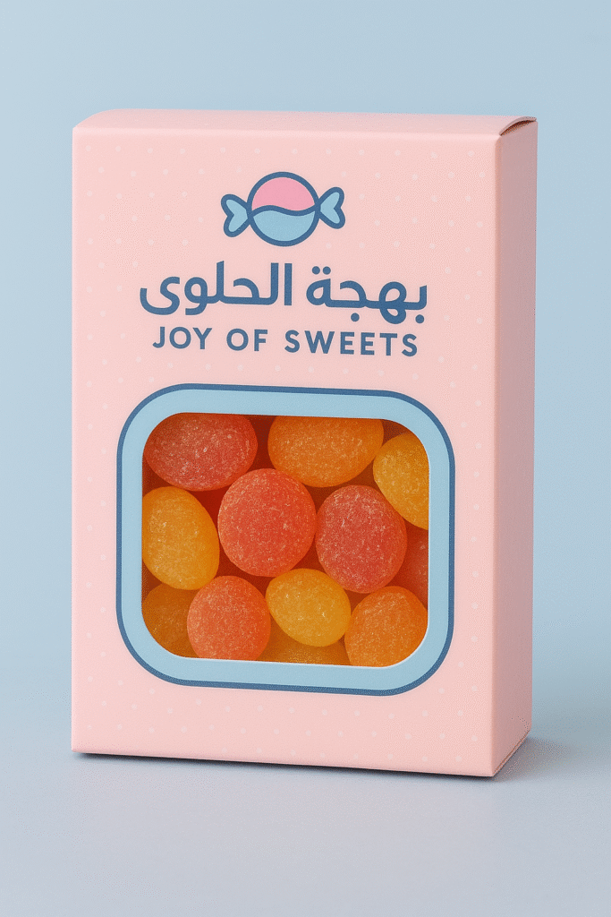 حلوى مطاطية بنكهات الخوخ و التوت و البرتقال مصنوعة من مكونات نباتية ( جيلي نباتي طبيعي )